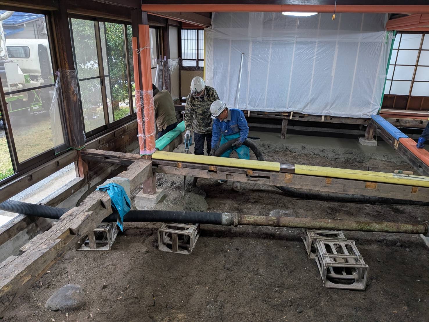 寒い中、大工の皆さんが頑張ってくれました。