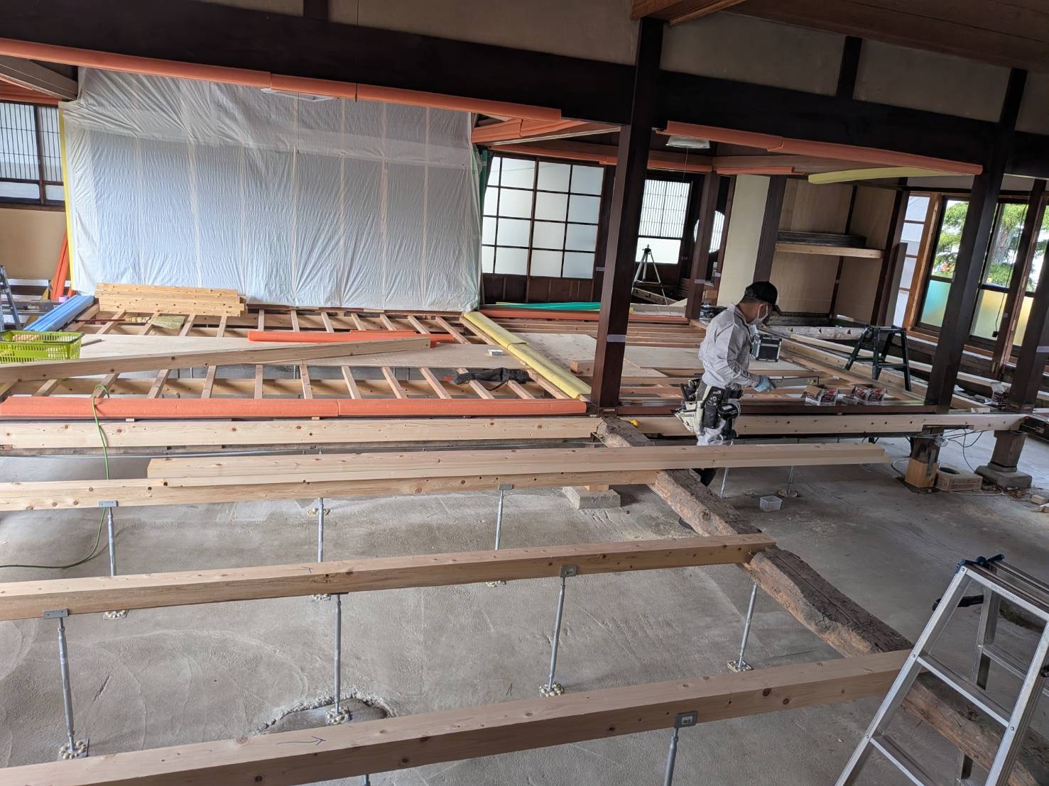 立派な骨組を活かし基礎補強・造作工事へと進みます。